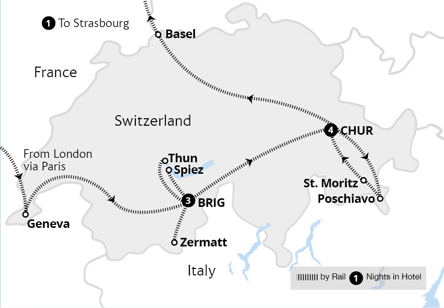 Experience epic mountain landscapes and shimmering alpine lakes on this fantastic holiday to Switzerland. Discover the Swiss Alps on the world-acclaimed Bernina Express and Glacier Express from our popular bases in Chur and Brig, traditional towns surrounded by snow-capped peaks. Enjoy a private aperitif on the terrace of the 10th-century ...