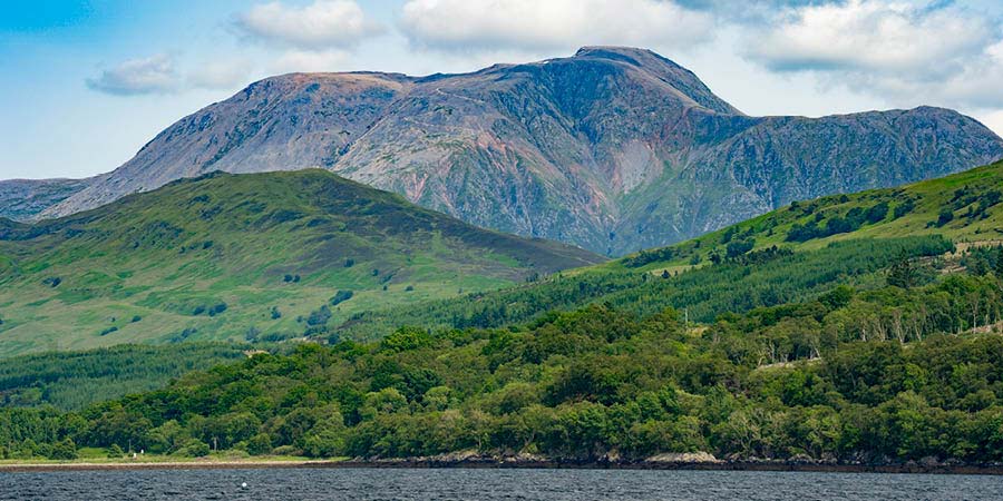 Next to the town of Fort William stands Britain's highest mountain and former volcano, Ben Nevis. In Gaelic, it means 'mountain with its head in the clouds', reflecting its misty summit. Standing at more than 4,400-feet-high, its presence guides the Jacobite steam train back into its eastern terminus.